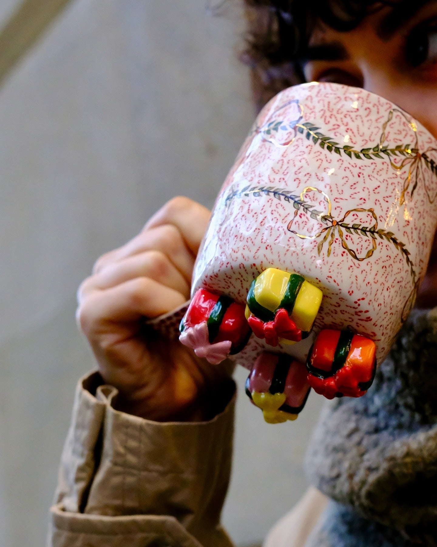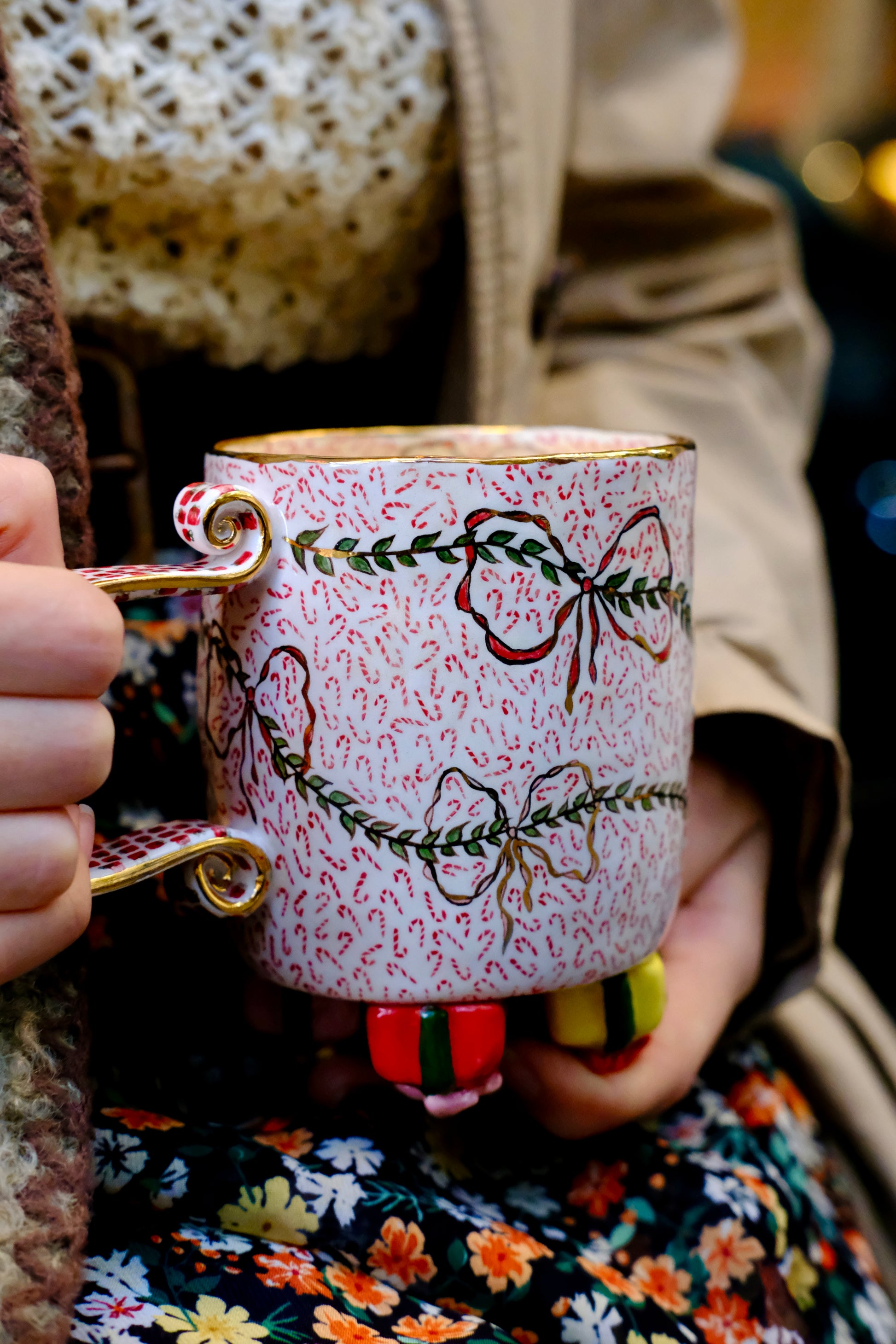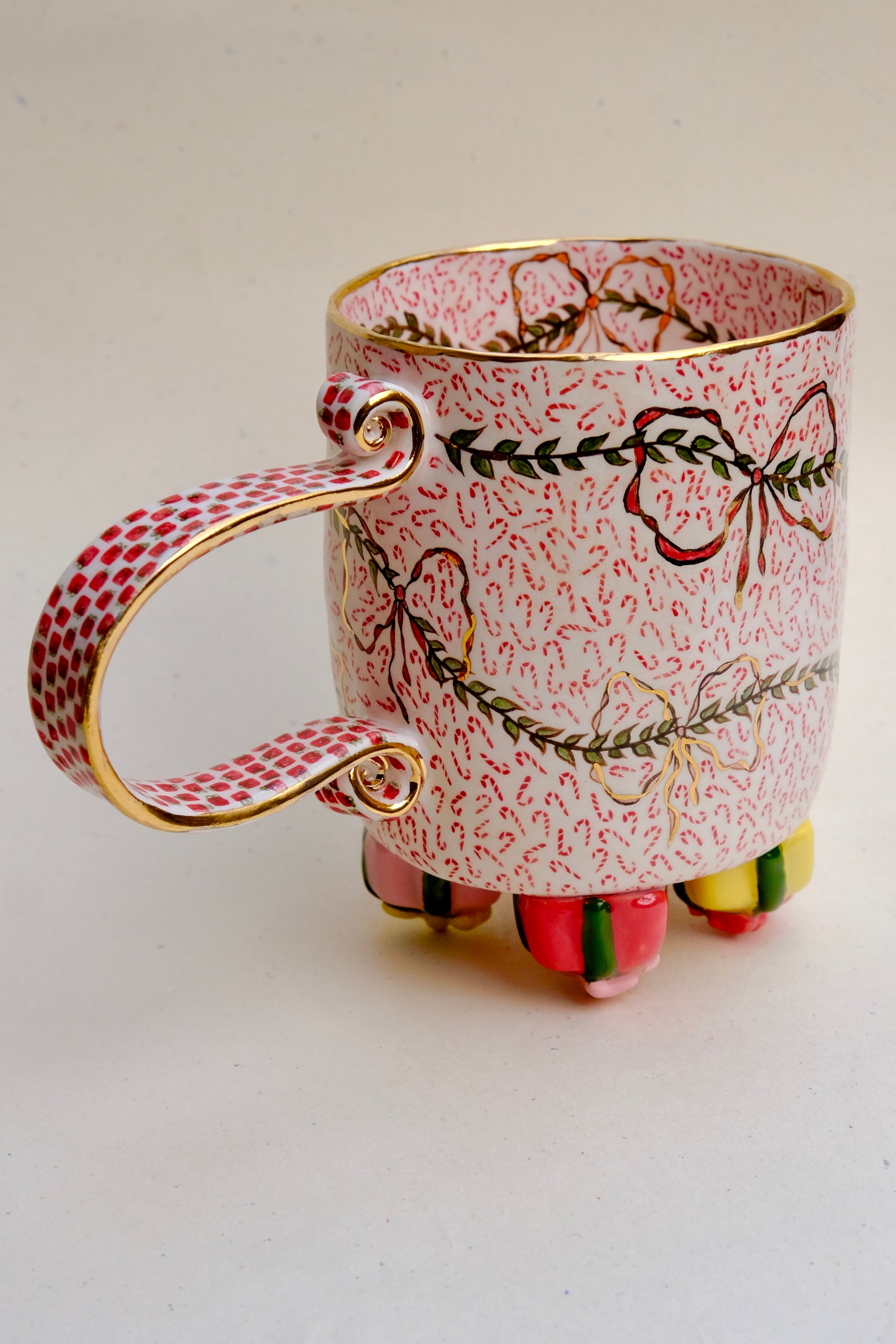 Celebrate the season with this charming cup.The cup features playful gift box-shaped feet, carefully coated with a protective layer of clear epoxy to keep them safe and sturdy.