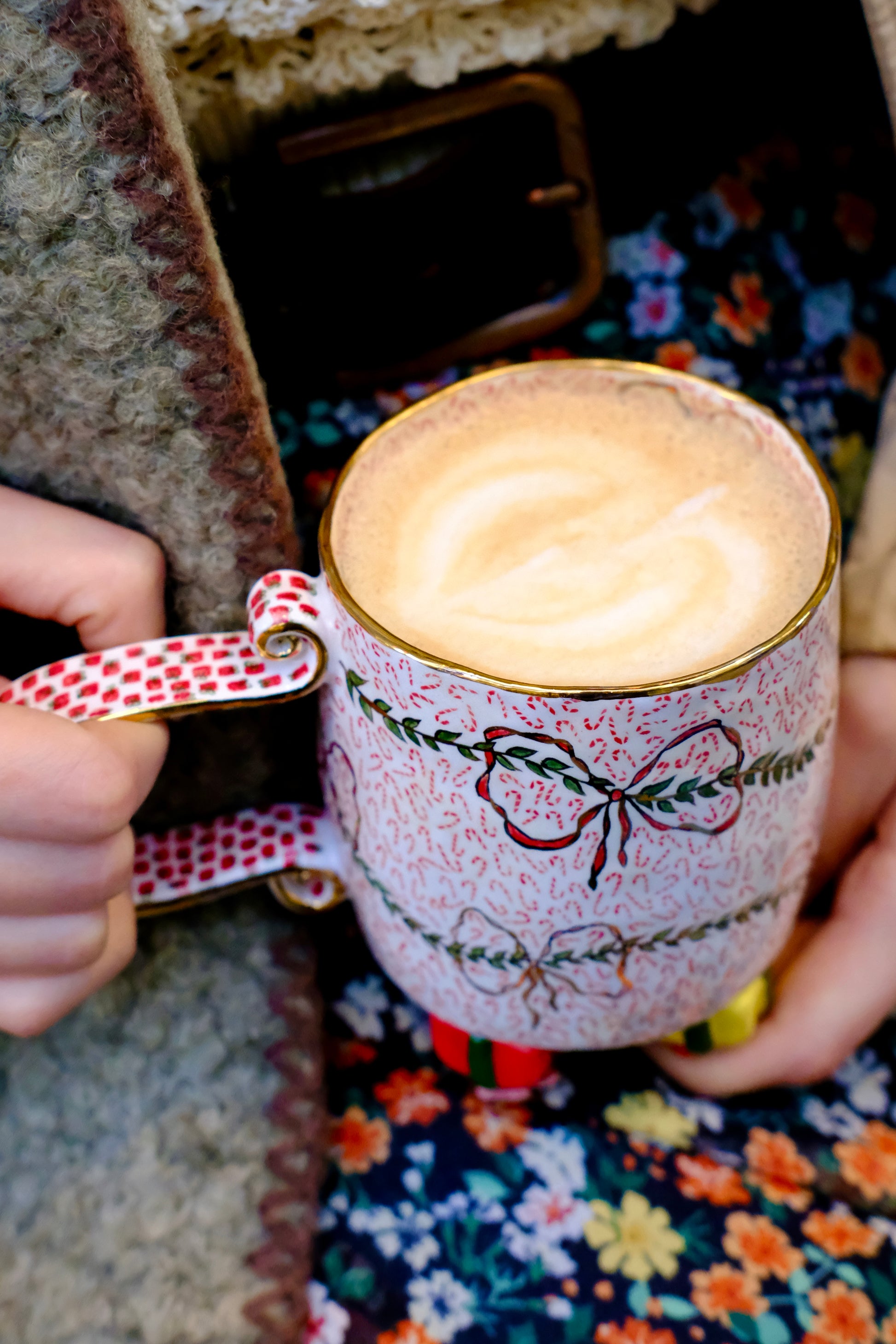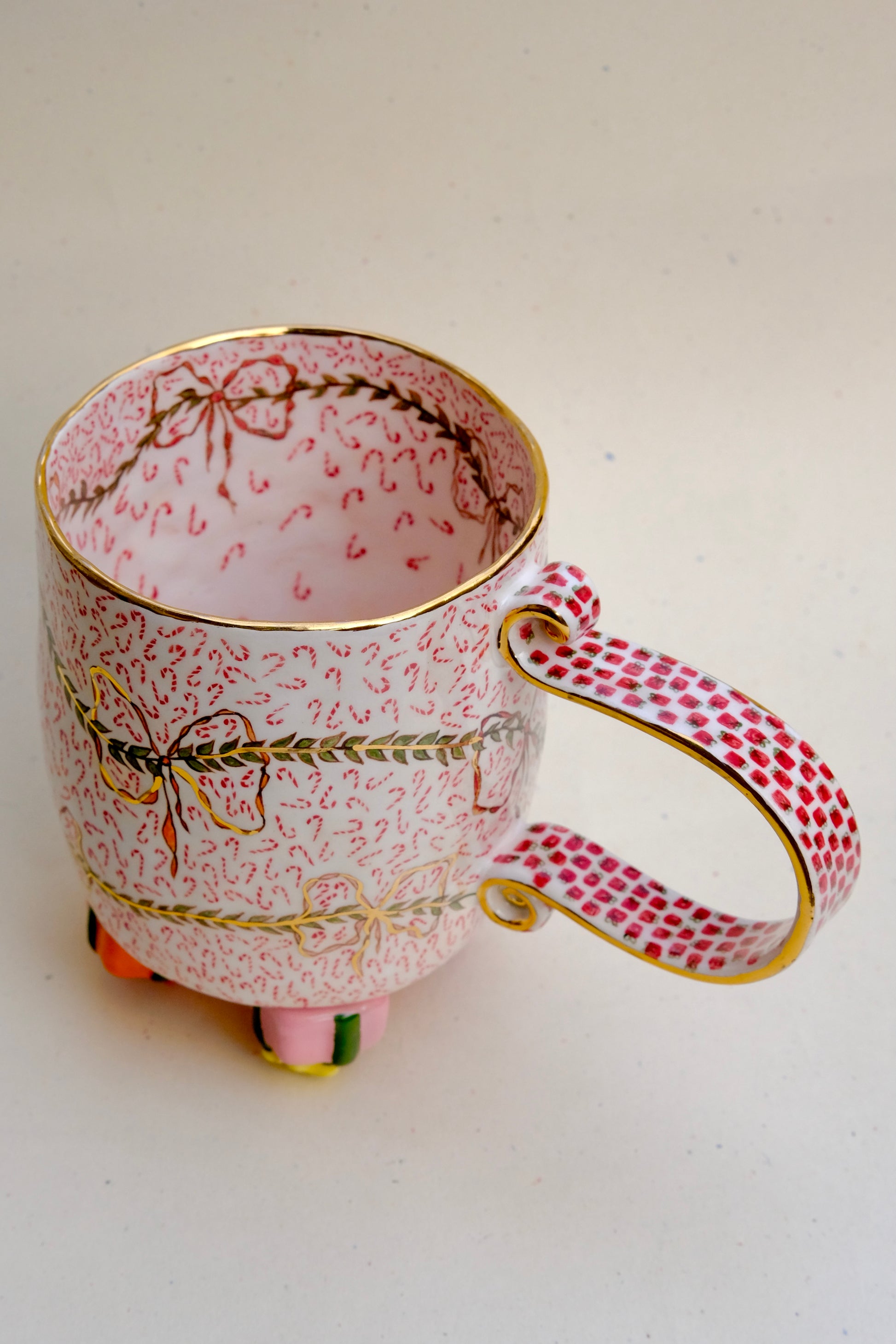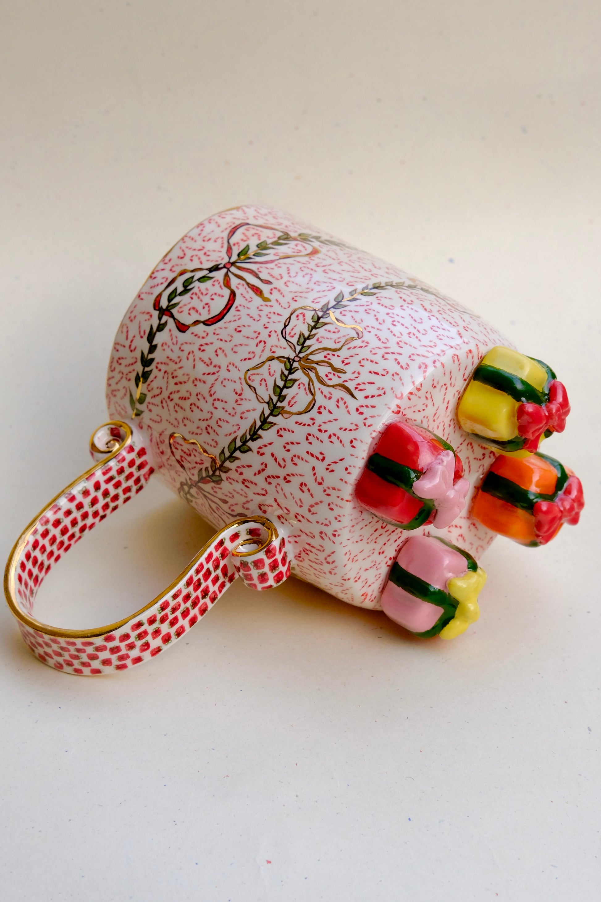 Celebrate the season with this charming cup.The cup features playful gift box-shaped feet, carefully coated with a protective layer of clear epoxy to keep them safe and sturdy.