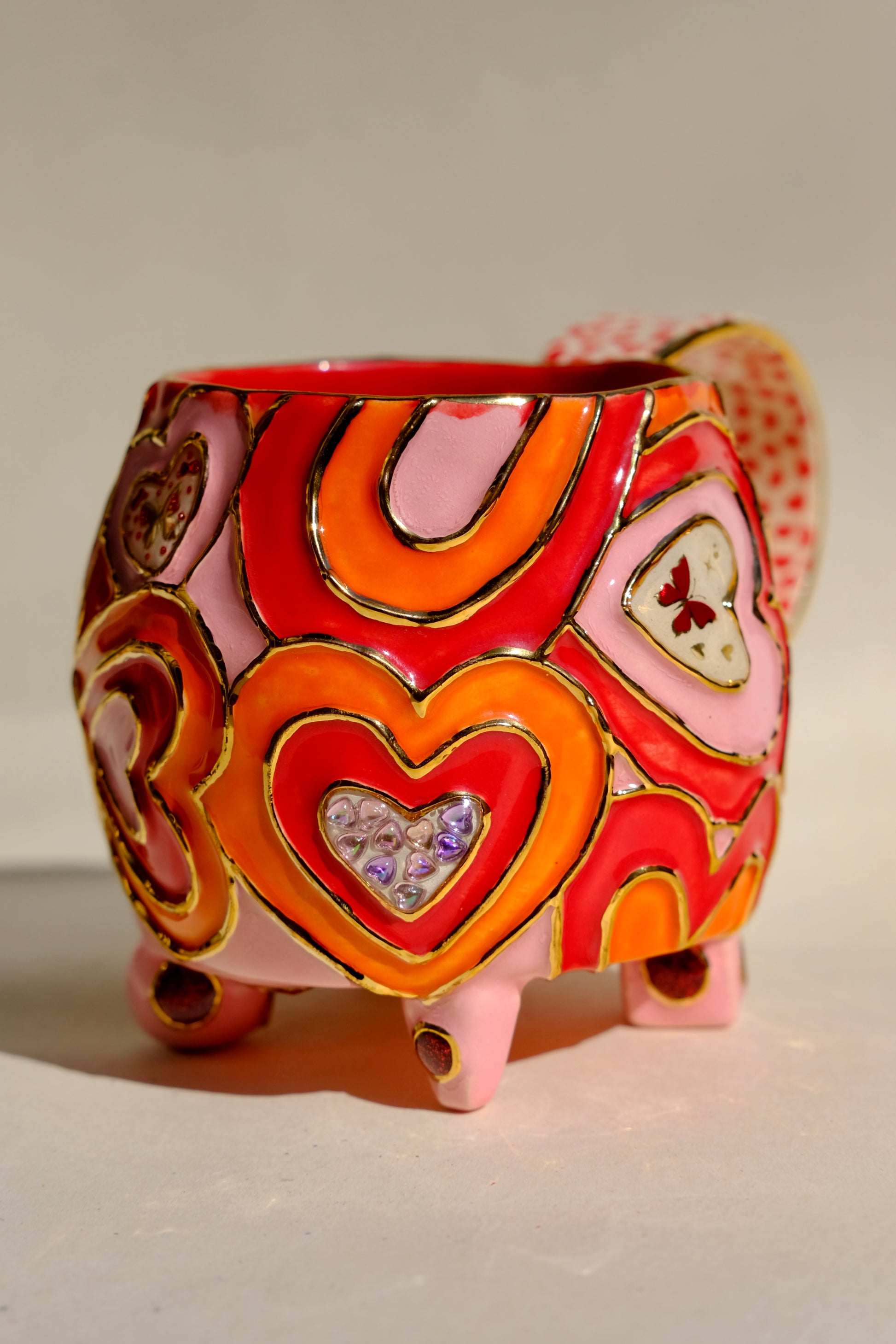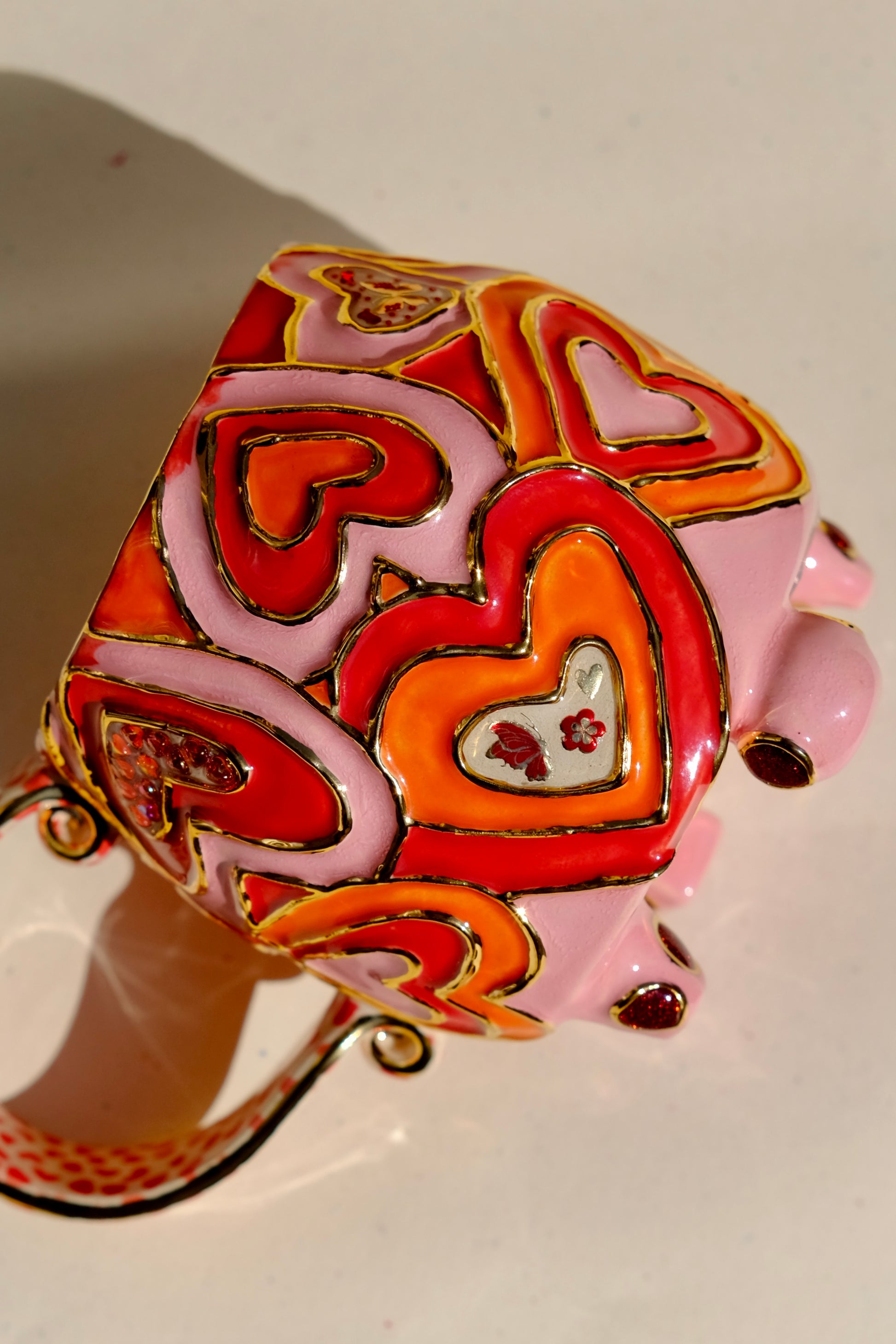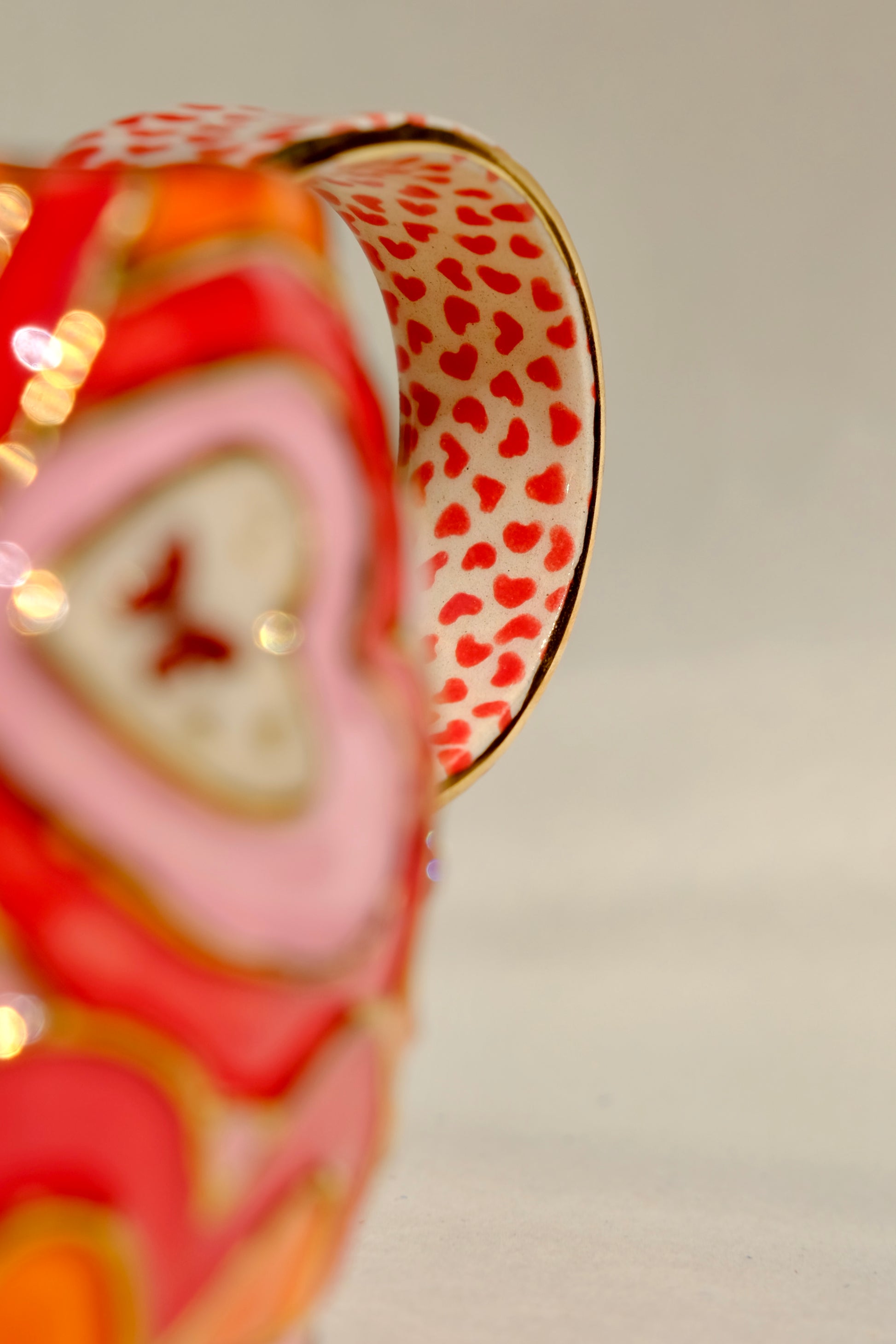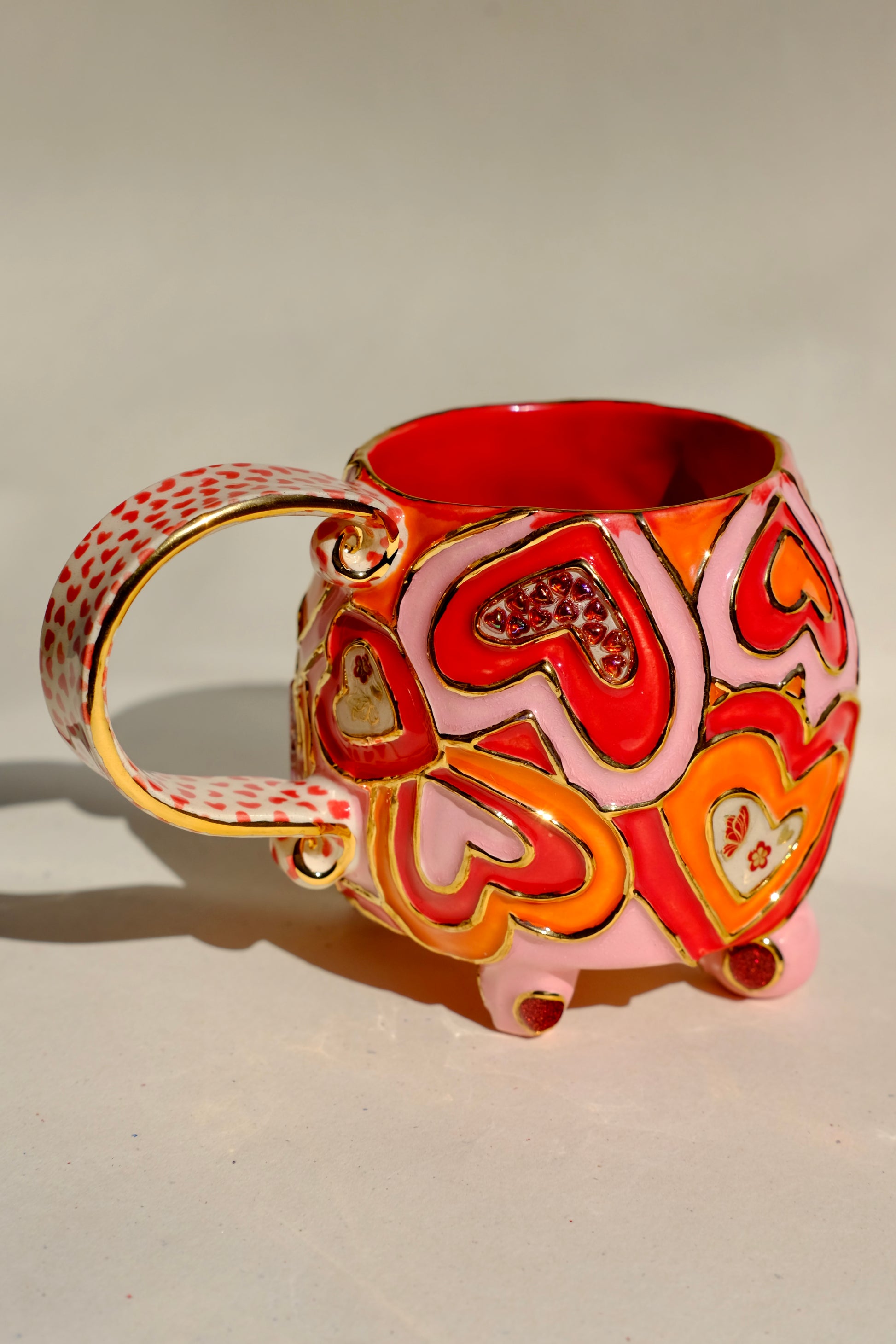 The Hot Love mug is a bold and emotional piece from my Frames Collection, created with layered hearts, warm colors, and hand-painted golden details.