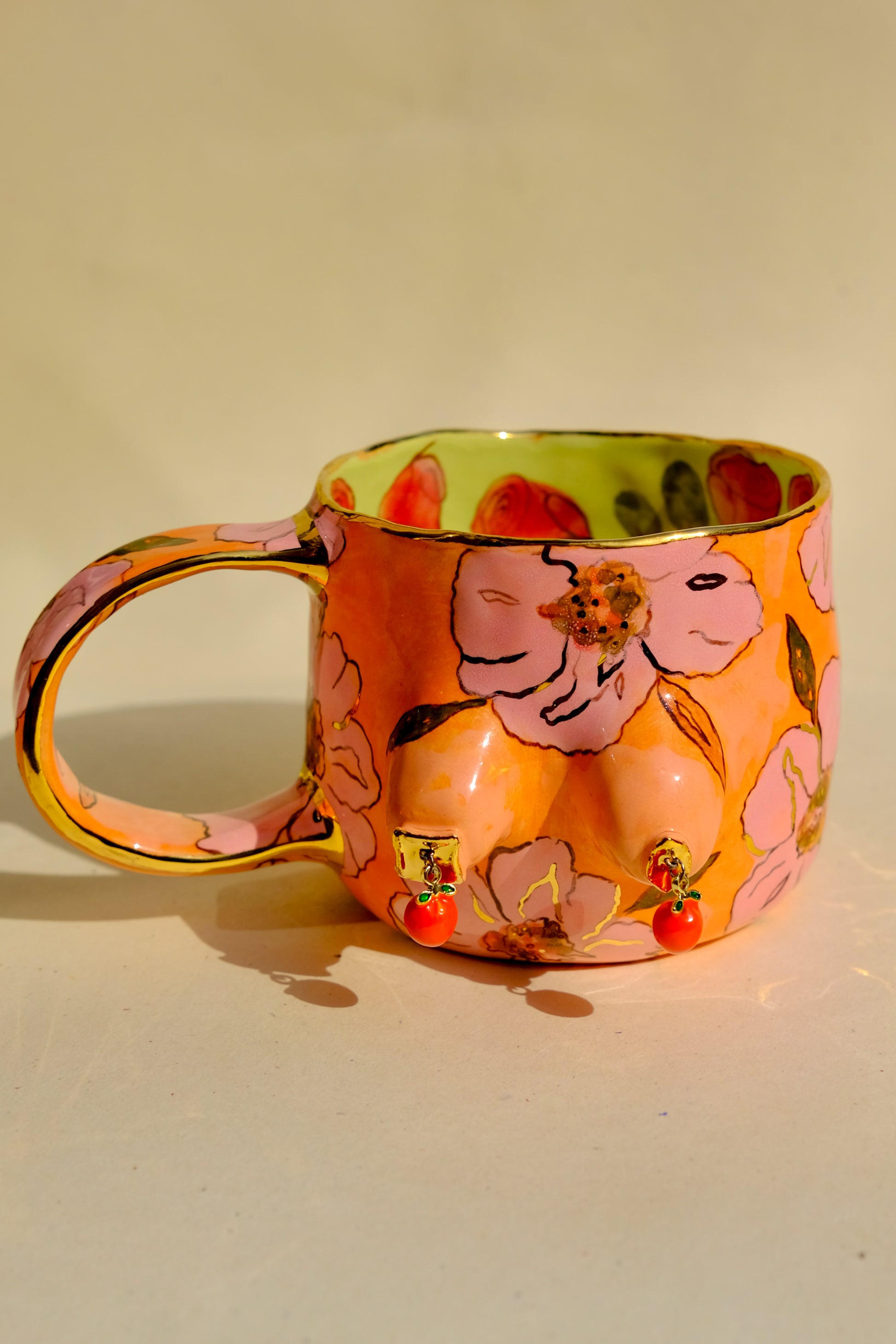 This mug is inspired by softness, femininity, and a bit of bold energy.Every single one is handmade and one of a kind — just like the journey behind it.